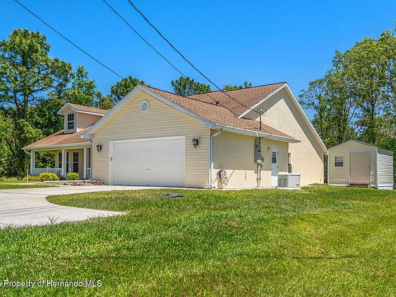 Take a tour of this beautiful 3 bed 2 bath block POOL HOME loaded with all the extras! The spacious living design and open floor plan gives you the feel of true luxury. Inside the primary bedroom you will find French doors leading out to the pool, a separate side entrance, and a sizeable walk in closet. The primary bathroom offers a substantial amount of space and features a walk in tub, his and hers vanities, linen closet, and a walk in shower. Enjoy cooking and entertaining guests in the gourmet kitchen with gorgeous countertops, center island, breakfast bar, additional dining space, and an abundance of cabinets providing plenty of room for storage. The living room includes a built in entertainment unit, gas fireplace, and dual French doors leading out to the lanai. Down the hall you will find a separate dining room for formal entertaining, an additional bedroom with walk in closet, second bathroom with pool access and an oversized laundry room equipped with a washer and dryer, tub sink and deep freezer. The extra large 2 car garage is designed with space for storage in mind and includes a concrete handicap accessible ramp into the home. Just outside the garage there is a utility shed complete with a split unit a/c system, giving you a climate controlled workspace. Other amenities include a whole home Generac system installed in 2021, lightning rods, carbon monoxide detection system, energy efficient 3M window film, central home vac system and a handicap primary bathroom. Have peace of mind knowing the roof and a/c were replaced in 2019! Nestled on .46 acres in Royal Highlands you are conveniently located minutes away from the Suncoast Parkway and endless shopping, dining and recreational areas including the Weeki Wachee river and Nature Coast. Don't miss out! Call to schedule your showing today!!