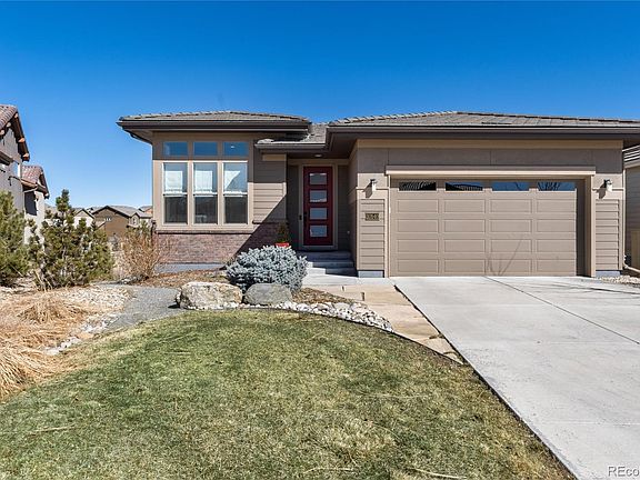 Welcome to your retreat nestled amidst the landscape of Backcountry, where nature's beauty meets modern comfort. This captivating ranch home offers an unparalleled opportunity to embrace the tranquility of living on open space in a gated community. Spanning across 3812sf of meticulously designed living space, this ranch-style home provides ample room for relaxation and entertainment. The open floor plan offers 2 bedrooms/3bathrooms on the main level and 2 bedrooms/2 bathrooms on the lower level. The chef-inspired kitchen is a culinary haven, equipped with top-of-the-line appliances, stone countertops, and custom cabinetry, ensuring both style and functionality. Oversized island with ample seating, multiple ovens, range, microwave and cooktop. Step outside to discover your own private oasis, complete with a spacious patio and deck below, ideal for alfresco dining, entertaining guests, or simply unwinding amidst the natural beauty of the surroundings. Retreat to the sumptuous master suite, boasting a lavish ensuite bathroom with oversized walk-in shower and custom designed closet, offering a peaceful haven to escape the hustle and bustle of everyday life. Fully finished walk-out basement offers family room as well as 2 bedrooms and 2 baths. Large lot, on open space, makes for great Colorado outdoor living. Residents of Backcountry enjoy exclusive access to a wealth of amenities, including miles of hiking and biking trails, clubhouse with fitness facilities, swimming pool, Indulge pub, and more, fostering a vibrant and active lifestyle. With convenient access to major highways, shopping, dining, and entertainment options, this home offers the perfect balance of tranquility and convenience. Don't wait, call today for your private showing.