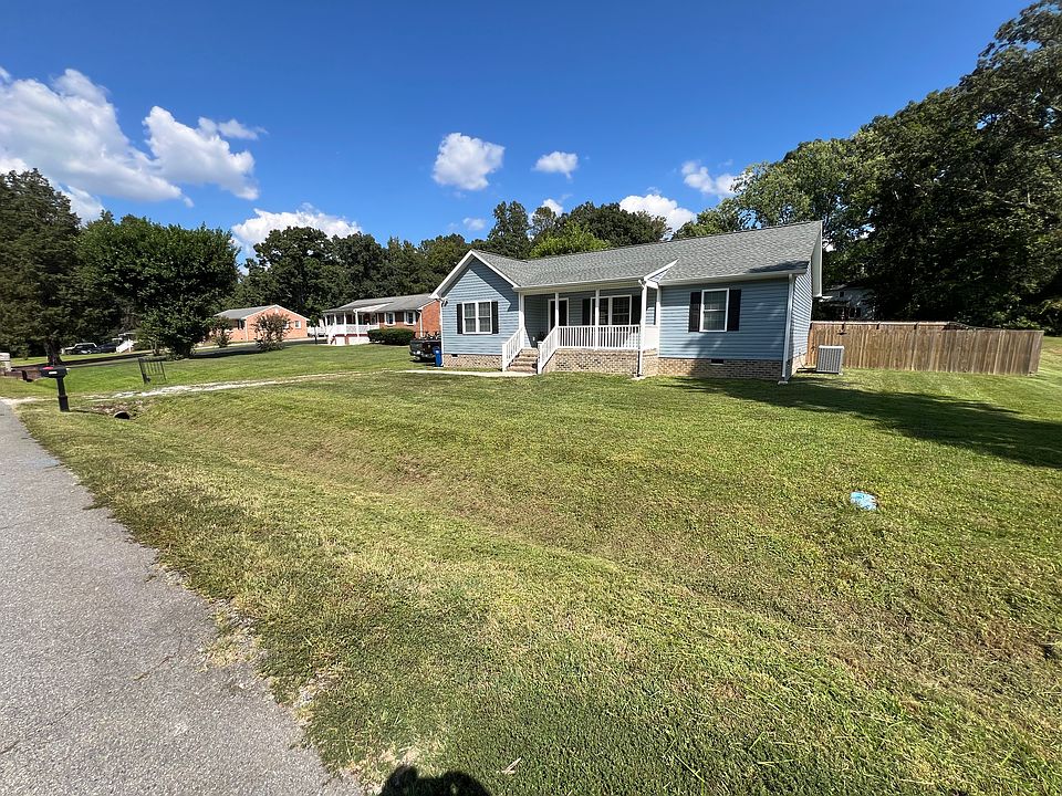 Built in 2022, this like new, 1800 sq ft rancher, blends comfort with an open-concept living space. Move-In ready and meticulously maintained, this beauty has a spacious great room that flows nicely into a dining area, along with 3 bedrooms and 2 bathrooms. The kitchen offers custom cabinetry, SS Appliances, granite counters and a peninsula island. A separate laundry room is just off from the kitchen. The primary suite is complete with a walk-in closet and a beautiful bathroom including a double vanity, shower, large soaking tub and linen closet. Two additional bedrooms and a full bath are located adjacent to one another. Enjoy relaxing in the sunroom or use this additional space for an office if you so choose. A large back yard is sufficient for all of your entertaining needs with an added bonus of a new privacy fence. This home is located in Chester, offering one-level living.