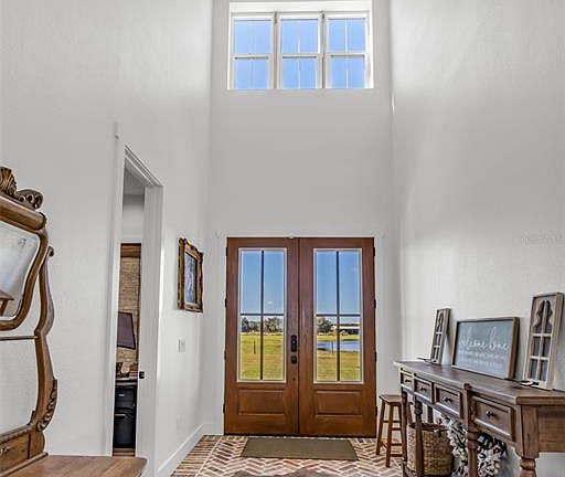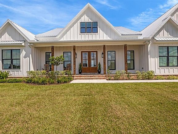 Welcome to your dream retreat in the heart of DeSoto County. Set on 10.25± acres with a private pond, this 2023-built custom farmhouse blends timeless charm with modern luxury. From the moment you arrive, the board-and-batten hardboard siding, brick accents, and durable metal roof set the tone for the quality and craftsmanship throughout. Step inside and you’re greeted by soaring vaulted ceilings, wide-plank LVP wood look floors, and walls of windows that frame sweeping views of the surrounding pasture. The open-concept living area features a gorgeous brick fireplace with custom built-ins, creating the perfect place to gather with family and friends. The kitchen is the true centerpiece of this home, designed for both everyday living and entertaining. Brick accents, a large center island, and double ovens provide warmth and function, while an oversized refrigerator and walk-in butler’s pantry make storage effortless. Just off the kitchen, the spacious dining area flows seamlessly to the expansive back porch where herringbone brick floors, tongue-and-groove ceilings, and pastoral views set the stage for unforgettable evenings outdoors. The primary suite is a private sanctuary with a spa-inspired bathroom offering dual vanities, a soaking tub, and a walk-in shower. A custom-designed closet provides abundant storage with built-in shelving and drawers. Two additional bedrooms, a dedicated office, and a generous laundry room with farmhouse sink add to the home’s thoughtful design. Beyond the home, the land is ready for your vision Whether it’s horses, cattle, gardening, or simply enjoying wide open space. The property is fully fenced and designed for those who value both privacy and the freedom of country living, yet it remains just minutes from the conveniences of Arcadia. This is more than a home, it’s a lifestyle. A place where modern amenities meet timeless farmhouse style, and where every sunrise over the pasture reminds you that you’re exactly where you’re meant to be.