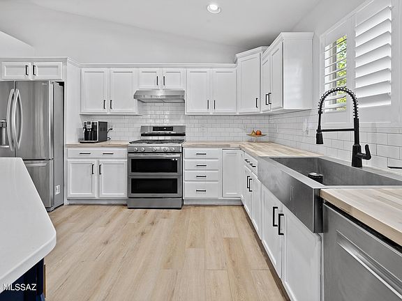 Discover your energy-efficient and modern dream home in the coveted Desert Willow Estates subdivision. This stunning property is situated within the award-winning Vail School District, ranked #2 in Arizona by Niche in 2024. Equipped with a cutting-edge 9.62 kW solar system installed in 2020 and complemented by two Tesla Powerwall batteries with 10-year warranties, this home promises energy efficiency and sustainability for years to come. The kitchen is a chef's paradise, featuring dual oven, butcher block countertops, and spacious quartz island ideal for culinary creations. The remodeled bathrooms boast quartz vanities and LED mirrors, adding a touch of modern luxury. Throughout the home, you'll find new luxury vinyl plank (LVP) and tile flooring, modern energy-efficient LED lights, and updated ceiling fans. Elegant wood shutters throughout provide both style and privacy. The front entry features a custom security door and French patio doors with built-in blinds lead to the backyard. The beautifully landscaped private yard includes flagstone walkways, an endless pool for efficient exercise, shade sails for comfort, and a custom playset for limitless fun. Additional peace of mind comes with a new roof installed in 2020. Nature enthusiasts and active families will appreciate the proximity to Saguaro National Park, the Arizona Trail, and nearby golf courses such as Fred Enke and Del Lago. The Rincon Valley Farmer's Market is also close by, offering fresh, local produce and a charming community atmosphere. This property seamlessly blends modern conveniences, luxurious upgrades, and an unbeatable location. Don't miss your chance to make this exquisite home your own!