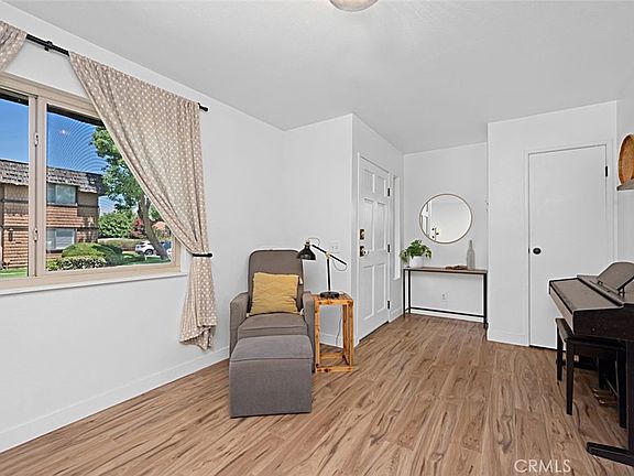 Step into this bright and airy White Oak Townhome with modern charm. The first floor is enhanced by beautiful laminate plank flooring that flows throughout, while large windows fill the space with natural light, creating a welcoming atmosphere. The kitchen has been thoughtfully updated with newly-installed butcher block counters, white cabinetry with brushed nickel hardware, stainless-steel appliances and recessed lighting. The eat-in kitchen offers a perfect spot for casual dining. The guest bath is tastefully finished with classic wainscoting for added character. Upstairs, the primary bedroom is spacious with a large closet for ample storage. Two additional bedrooms are each equipped with ceiling fans for added comfort. The full bath features a new vanity and matte black hardware. The private outdoor courtyard leads to the garage, which includes a convenient laundry area. Community amenities include a pool, playground and maintained green spaces, perfect for relaxing or spending time outdoors. This move-in-ready townhome is ideally located near Kaiser Permanente Hospital, local universities, restaurants, shopping and offers easy access to the 91 freeway. With its thoughtful updates and prime location, this home is ready for you to move in and enjoy!