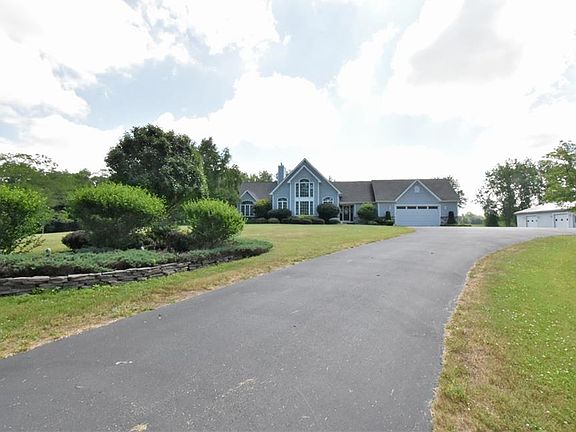 Welcome to 10545 Angola Rd, a 3 bedroom, 2.5 bath estate which sits on 18 acres of land. While touring the grounds, admire the wide-open floor plan which flows through the great room and into a generously sized kitchen with access to the laundry room. Step through the sliding glass doors onto a full deck that overlooks the Fiberglass Pool (in-ground, saltwater pool) and hot tub, man-made pond with fountain and the beautiful acres of land. Property comes equipped with a WHOLE HOUSE generator system! Showing and negotiations to begin at the open house, Sunday 7/5 from 11 - 1 pm!