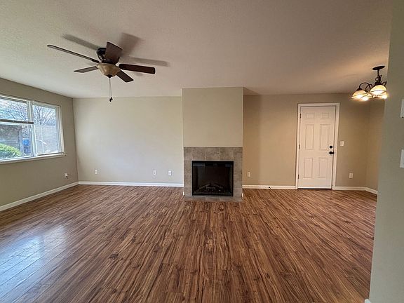 Located near multiple parks and within walking distance to Fred Meyer and many restaurants. Single floor unit with 2 bedrooms, 1 bathroom, 859sf, attached 1 car garage. Cadet heaters. Laminate flooring throughout. Living room has an electric fireplace and the dining area leads to a large fenced backyard with a patio. Kitchen includes a refrigerator, electric range oven, dishwasher and garbage disposal. Full bath with a tub/shower and single sink. Laundry closet with hookups. 2 small pets, under 30lbs, allowed with approval and a $500 pet deposit per each animal. Yard maintenance included.