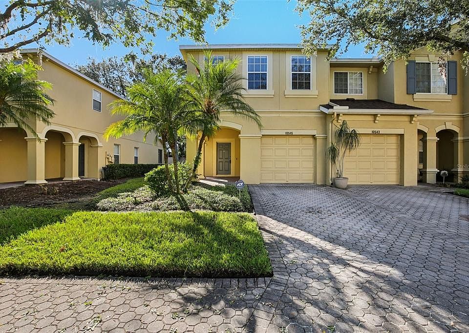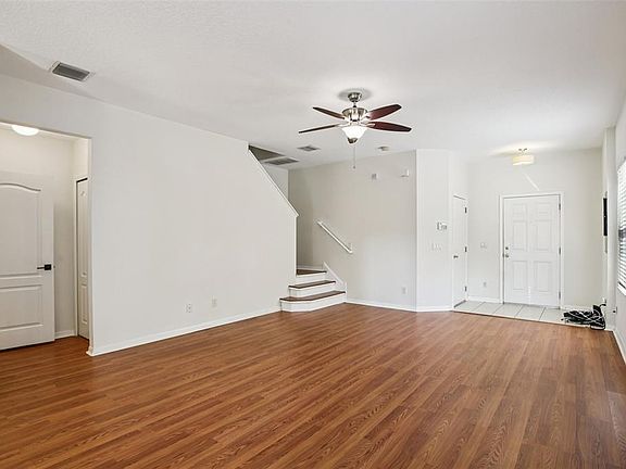 One or more photo(s) has been virtually staged. Tucked inside the gated community of River Walk, this well cared for townhome blends comfort, convenience, and an easygoing Florida lifestyle. Set on a corner lot, the home feels bright and open thanks to abundant natural light and a layout designed for everyday living. The first level features a flowing open floorplan with clean flooring throughout and no carpet anywhere in the home. The kitchen is equipped with new appliances, and a new AC unit ensures steady comfort year round. A pavered driveway and one car garage enhance both curb appeal and functionality. All three bedrooms are located upstairs along with a versatile loft area that can serve as an additional lounge, office, or hobby space. The primary suite includes dual sinks and a walk in shower, and the conveniently placed laundry room with washer and dryer makes chores a breeze. The HOA also maintains the roof, offering an added layer of peace of mind. River Walk provides a relaxed setting with thoughtful amenities, including a community pool, a private dog park, and a private picnic area. With quick access to I 75, US 301, the Crosstown Expressway, shopping, dining, and entertainment, this townhome offers an appealing mix of comfort and location.