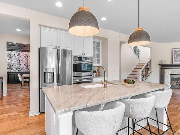 Welcome to luxury living in vibrant Backcountry! This stunning Richmond home has been freshly updated with new paint and flooring, showcasing designer finishes that make it a true gem in this exclusive community. Upon entering, you’ll find a private main floor office and an elegant formal dining room exuding modern sophistication. The open gourmet kitchen is a chef’s dream, featuring custom cabinetry, stylish brushed bronze hardware, contemporary lighting, double ovens, a butler’s pantry, and chic quartz countertops. This space seamlessly flows into a cozy breakfast nook and an inviting living room, highlighted by a beautifully refinished stone fireplace, ideal for relaxation and entertainment. Located on a quiet, interior lot, the expansive backyard, a rare find that offers plenty of space for kids, pets, and gardening. Upstairs, you’ll find four spacious bedrooms, including a luxurious primary suite that serves as a true retreat. This suite boasts a newly renovated five-piece bathroom with exquisite custom millwork, floor-to-ceiling custom tile, soaking tub, extended glass shower, and generous walk-in closet. The professionally finished basement is a fun and functional space, complete with a rock climbing wall that adds a unique touch! The guest suite with a full bath ensures your visitors feel at home, while a versatile workout or hobby room and ample storage options provide convenience. Enjoy resort-like amenities right within your community, including the fabulous Sundial clubhouse, where you’ll find a stunning pool, relaxing hot tubs, a fitness center, and a private restaurant/bar. Engage in a vibrant community lifestyle filled with events like concerts, classes, parties, and even comedy shows. With convenient access to 8,000 acres of trails, top-rated schools, and outstanding recreation centers, this property truly represents the best of Highlands Ranch living! Don’t miss your chance to experience this extraordinary home and lifestyle!
