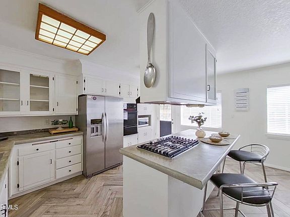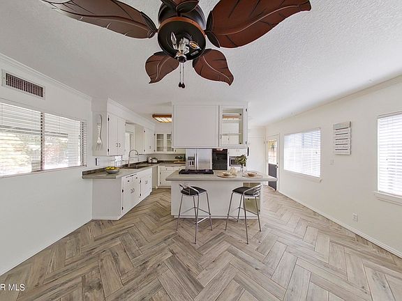 Come see this amazing and unique gated custom ranch on nearly 1/2 acre. 3 bedrooms with 1.75 baths. Updated Kitchen with White cabinets custom concrete grey counters with island & breakfast bar. Upgraded herringbone pattern tile in grey wood color in entry, kitchen, and dining area. Dual fireplaces one in dining room w/ fireplace and mantel and one in great room with fireplace and french doors to patio. All bedrooms are super spacious. The primary bedroom is extra large with french doors to patio. Newly painted interior. Roof is newer. Property is massive has lots of extra space. Beside a 2 car attached garage , there is a driveway to the back to a large 40x40 steal framed building with dual Elephant doors. Lots of possibilities to your hearts content...possibilities can be endless....for RV's, Car Collection, trucks, make into another unit, a barndominium ( subject to any city requirements) Suburban living , big lot for horses and limited agriculture. Also included is a storage container and another storage building with telephone hook-up and a window air unit.