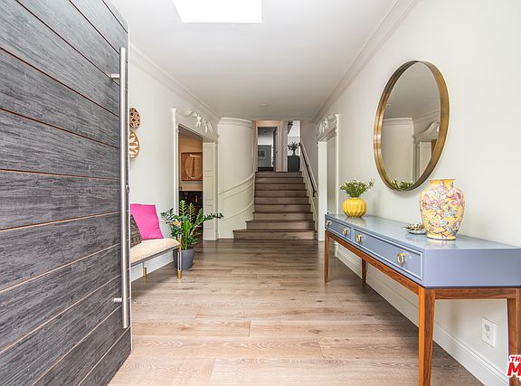 Nestled in Little Holmby, known for its idyllic charm & meandering tree-lined streets, sits this exquisitely reimagined gem. Vibrant eco-friendly foliage, unique trellis & a pivoting front door sing in perfect harmony w/a host of modern updates & original period details inside. A light-infused entry opens to wide plank wood floors & crown moldings dancing across a floor plan that embraces elegance & fine living. The living room w/fireplace sits across from a formal dining room. The dining area dovetails w/a chefs kitchen replete w/custom cabinets, waterfall stone counters, high-end appliances + center island w/bar seating. Upstairs, a family room opens to the backyard w/crisp saltwater pool & BBQ - perfect for entertaining. Four bedrooms + 4 remodeled baths - including a sumptuous primary suite w/dual sink vanity, soaking tub, steamed shower & walk-in closet - compliment a recreation/gym, utility & laundry room. A truly memorable offering, just moments from Westwood Village, UCLA & Warner Elementary.