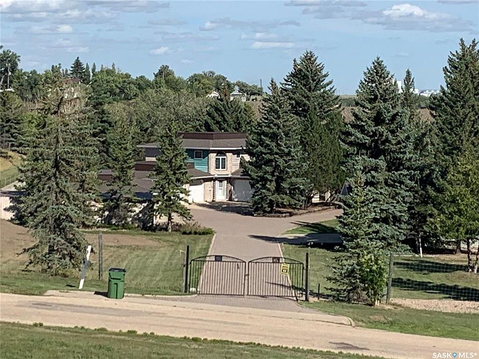 A VERY RARE & UNIQUE gated 2.36 Acre property overlooking the Moose Jaw River Valley. The property is landscaped w/grass, trees (fruit trees, shrubs, hedges), patio, decks & expansive interlocking stone drive & parking areas. The entire site is fenced w/a “game” fence & metal gate plus a RETAINING WALL – approx. 280 ft of poured & reinforced concrete on the North side as this property was levelled into a hillside. This site is superior to any property in Moose Jaw in its grandeur & rarity. Property hosts 2 x Att. Dbl. Garages, 1 x Oversized dbl. Garage & 1 X Triple Det. Heated Garage. There are 2 x Parking Pads that could accommodate another 12 or more vehicles & a stately drive that leads you into the property from the front gate plus a Dual sided Shed, set as an outbuilding. Now let’s talk about the 2 Storey home. There is an upper Deck off Primary Bed, in addition to a wraparound deck from dining area & even a Patio facing the hillside. The main entrance is named “Mudroom” as this joins the 2 Att. Garages, however there is a formal Front entrance w/Foyer w/cathedral height ceiling w/drop light style chandelier. This home is SOLID & the space is incredible that can be updated to your personal choice. 3 Bedrooms, Den, 2 x Family Rooms, 2 x Carpeted Crawl Spaces named as “Other”, 3 Baths & w/some elbow grease this property becomes an ESTATE, not only for a family but a property where you could not only live but operate your business. The possibilities are endless! Serious & Qualified buyers only. HOME IS SOLD AS IS, WHERE IS! Drive to 7th Ave SW, drive down the road that was previous access to the site of the former Wild Animal Park & you will see the Front Gate! FOR A FULL VISUAL TOUR, PLEASE CLICK ON THE MULTI MEDIA LINK and Let’s Make Your Next Move!