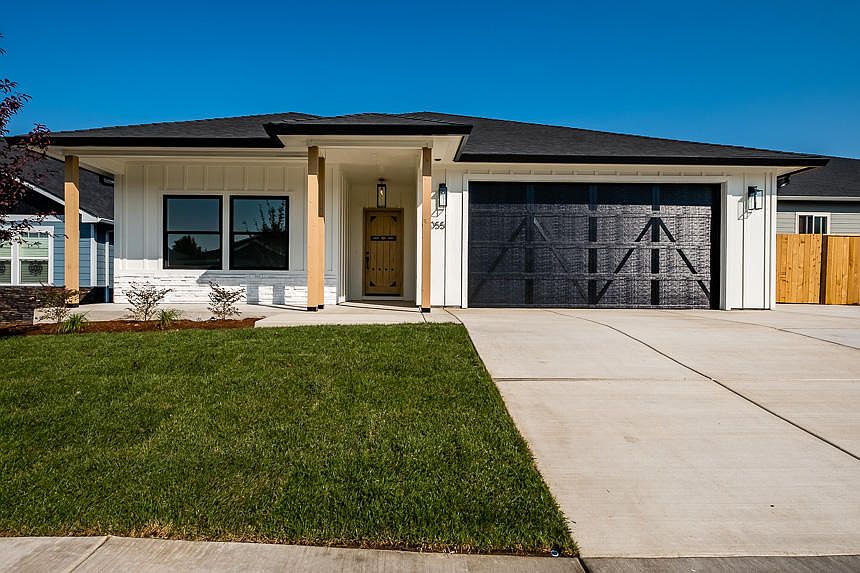 Quality craftsmanship and attention to detail with modern finishes abound throughout this beautiful 3B/2B Kammerzell custom built home. Striking large entry with herring bone tile inset opens to a spacious open floor plan with 9' ceilings, laminate throughout and Anderson windows. Great room includes a gas fireplace, kitchen features include a center island with down draft and stone countertops, a full-sized farm front kitchen sink electric oven, gas range/oven combo, a dishwasher and a sizable Butler's Pantry. The master bedroom bestows dual walk in closets, double vanity master bath layout with a curbless dual head shower and a free-standing soaker tub and tile floors in all the bathrooms. The finished and insulated garage is wired for an electric car charging port and Solar PV ready. The adjoining oversized mud room has a pantry. Front & back yards are landscaped with grass & bark. New construction, amenities and specs may change without notice.