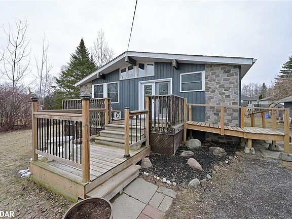 DOUBLE LOT WITH BRAND NEW DRILLED WELL! WALK TO BEACH! 1043 SF! Welcome to 1055 Balsam Rd, a delightful three-bedroom home that showcases both charm and beauty. Step through the stunning double-door entryway into an inviting kitchen that showcases a beautiful backsplash, quartz countertops and a movable center island for enhanced convenience. Next, enter the stunning living room, complete with a soaring vaulted ceiling, a magnificent fireplace, and elegant side cabinets that are ideal for showcasing your beautiful decor. The master bedroom features a spacious walk-in closet and has access to its own private deck. Enjoy a refreshing swim at the beach, then make the most of the expansive backyard, which is ideal for hosting gatherings and savoring the delightful experience of roasting marshmallows around the fire pit. Plus, there's a garage that any handyman can transform into their dream workshop. IMPROVEMENTS: Hookup for Gas Barbeque. Furnace Oct 2024, AC 2015, Roof 2015. DON'T MISS OUT ON THIS AMAZING OPPORTUNITY!