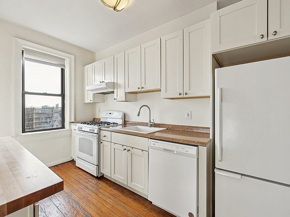 Spectacular NYC skyline views from every window. Just 1.4 miles from midtown, in an excellent school district, this 1100 ft. two bedroom one bath apartment boasts unobstructed views from every window - the New York City skyline, the Harbor, even a sunset view! Light-filled, airy and spacious, with an open floor plan living/dining room/kitchen. Updated cabinets, kitchen island with butcher block countertop, two new ceiling fans, new d/w, high ceilings, hardwood floors with parquet in the living and dining rooms. Situated on the top floor of a beautiful pre-war elevator building, the apartment faces south and east. The building has laundry in the basement, and a back patio outfitted with barbecue grills, tables and benches for your enjoyment in good weather. The building has stable finances and no current assessments. Public transportation at the door. Come have a look, and watch the sunset reflected in the skyscrapers of Manhattan through your future living room's picture window!