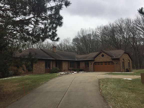 Picturesque 3-acre parcel of land surrounded by woods and nature provides seclusion and privacy. This all brick ranch style home is sure to please the buyer looking for peace and quiet. Walk through the front door of the home to find cathedral ceilings and an open living area with built-ins and a gas fireplace. From the living room head to the kitchen with attached eating area. The kitchen is spacious with a large center island, lots of cabinetry for storage, and tons of counter top space. Enjoy the views from the dining space with large windows looking out to the back yard. A nice feature is the 3 seasons room located just off the dining area. The main floor offers 3 bedrooms, including an owner's suite. In the lower level, is a completely finished walk-out with an additional fireplace