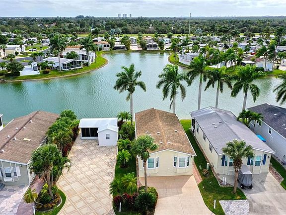 Welcome home to your own waterfront retreat, where every day feels like a permanent vacation. This beautifully maintained two-bedroom, two-bathroom home, built in 2010 by LeeCorp Homes, meets Florida’s modern hurricane and safety standards, offering peace of mind and comfort. Step inside to an open-concept living, kitchen, and dining area bathed in natural light and framed by breathtaking water views. The vaulted ceiling in the living room enhances the sense of space and airiness, while the built-in dining cabinetry adds both elegance and practicality—perfect for showcasing your favorite dinnerware or treasured collectibles. The galley-style kitchen features full-sized appliances, including a range, microwave, and French door refrigerator/freezer, along with generous counter space ideal for cooking, baking, and entertaining. A full-sized laundry area is conveniently located off the central hallway, which leads to a guest bathroom illuminated by a sun tunnel skylight, a guest bedroom with a built-in desk, and a spacious primary suite. Both bedrooms have luxury bamboo flooring while the rest of the living areas are tiled. The bedrooms easily accommodate king-sized beds and offer ample built-in storage. The primary ensuite boasts a walk-in shower and a window that fills the space with natural light. Step out onto the screened lanai to enjoy serene lake views and swaying palms—perfect for sunrise coffee or sunset beverages. Located in the vibrant Silver Lakes community, you’ll have access to a 9-hole golf course, fitness center, pickleball and tennis courts, multiple pools and spas, two clubhouses, and a full calendar of social activities. Just a short drive from the stunning beaches of Marco Island and Naples, as well as top-tier dining, shopping, and entertainment, this is more than a home—it’s a lifestyle. Welcome to Silver Lakes, where your paradise awaits.
