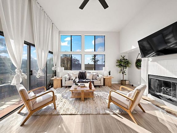 Experience luxury living in this stunning top-floor sanctuary! This exquisite 2-bedroom, 2-bathroom condo boasts 1,259 square feet of bright, airy elegance, featuring soaring vaulted ceilings and a grand fireplace that creates the perfect ambiance for cozy nights in. Tucked away at the peaceful rear of the complex, this home offers an unparalleled sense of privacy and tranquility. Step onto two spacious balconies and soak in breathtaking views of the iconic Presidio Mission, the perfect backdrop for morning coffee or evening wine. The open-concept layout is designed for effortless entertaining, with chic finishes and modern comforts like central air conditioning, an in-unit washer and dryer, and two convenient underground parking spots. Prime location? Absolutely! Just minutes from USD, Fashion Valley, SeaWorld, and the YMCA, you’ll have everything at your fingertips.
