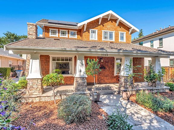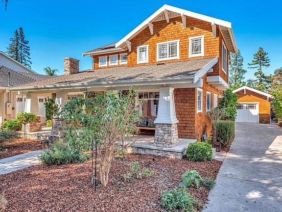 Quintessential Charming Craftsman with custom hardwood built-ins, pegged mortise tenon joint doors (with ebony wood pegs), Ernest Batchelder fireplace tiles, custom stained glass, box ceilings, granite counters, solid cherry cabinets, Wolf gas stove, Bosch dishwasher, surround sound, hidden details abound in this house. Central A/C, central vacuum, owned solar and tankless water heater in the partial basement. Full bedroom and bathroom on the main level, upstairs primary offers a large walk in closet, heated floors and tub. There is a permitted workshop in the back ready to be an ADU with gas, electricity, water and drain lines. Remodeled and added onto in 2005. Just a few blocks from downtown Willow Glen, shopping, dining and freeway access. Booksin Elementary.