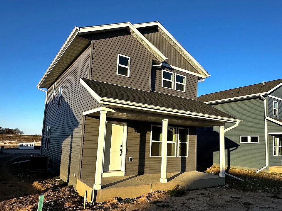 Beautiful new construction. Dream kitchen with lots of cabinets, island and a large pantry. Separate dining area w/patio door. Great, open concept living room with access to covered front porch and common area greenspace. 3 bedrooms and 2 full baths on upper level. For your convenience, there is a 1st floor laundry. Founders' Pointe Neighborhood offers the lifestyle you want at an affordable price point. View all 3 models and make your selection today. NO HOA FEES