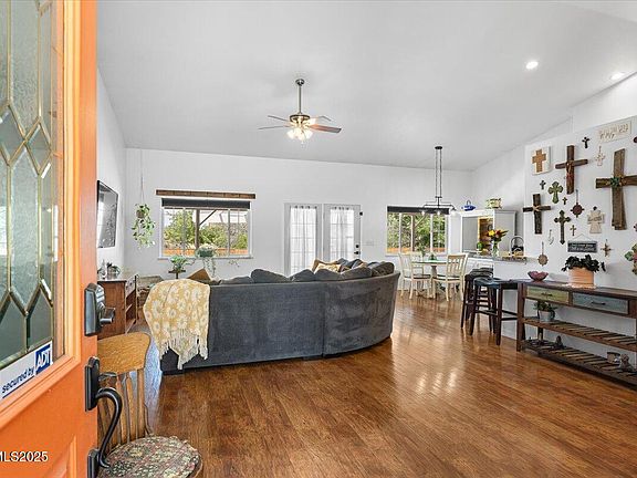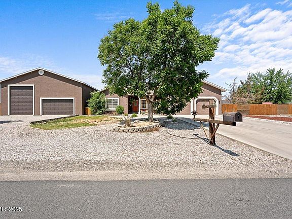 Welcome to 1055 Golden Park Way, Fallon, NV! Rare opportunity to own a spacious home with incredible versatility! The main residence offers 4 bedrooms and 2 bathrooms with a bright, open-concept layout perfect for comfortable living and entertaining. The large kitchen features ample counter space, plenty of cabinetry, and a functional flow into the dining and living areas—ideal for gatherings. In addition to the main house, this property offers a 2400 sq ft detached RV garage, ideal for storing your vehicles, toys, or creating a workshop. The RV garage includes 600 sq ft of in-law quarters with a separate entrance. This 1-bedroom, 1-bath unit features an open floor plan, laminate flooring, A/C, full kitchen, washer/dryer, and a cozy, modern feel—great for extended family, guests. Outside, the property is situated on a spacious lot, offering plenty of room for outdoor activities, gardening, and enjoying the beautiful Nevada sunsets. Located in a peaceful neighborhood, yet just minutes away from downtown Fallon, schools, shopping, and NAS Fallon. Don't miss the opportunity to own this incredible property - main home, guest quarters, and massive garage space! Plenty of room for both family and hobbies!