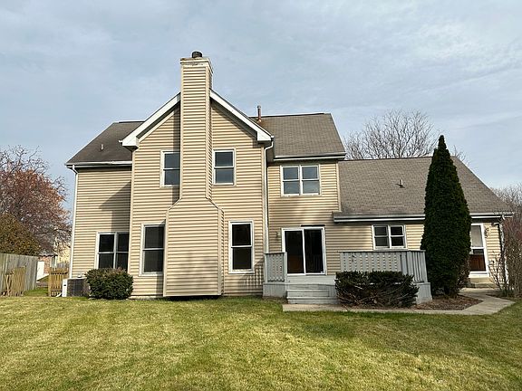 Solid 4 bedroom 2.5 baths with easy access to I-90. Open two story foyer with ceramic tile. Great room with fireplace. Open kitchen with amble oak cabinets. Nice sized island. Built in work desk. Breakfast room/den overlooks backyard. Formal dining room. Primary bedroom has on-suite with whirlpool and separate shower. 3 additional bedrooms. Finished basement with recreation room and office. 2 car attached garage. Property sold "AS IS".