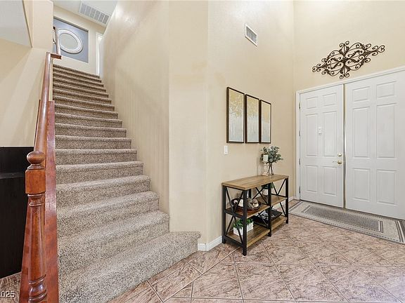 Welcome to this beautifully maintained Henderson home with a pool in the highly sought after Paradise Hills community! Situated in a charming cul-de-sac just steps from the elementary and middle schools, this home features 4 beds/3 baths plus a den & loft. Step inside to find a versatile downstairs den with elegant double doors & adjacent full bathroom. Explore the gourmet kitchen, showcasing stainless steel double convection ovens, a large eat-in breakfast bar, center island, attached dining area & pantry. Upstairs, you’ll find generously sized bedrooms, a full bathroom and a bright loft area. Spacious primary suite includes double sinks, a luxurious shower and large walk-in closet. Step outside to your private backyard retreat complete with covered patio, putting green, and solar heated pool and spa. A three-car garage with epoxy flooring and overhead storage completes this exceptional property. The home also includes a newer HVAC for the upstairs and a newer hot water heater.