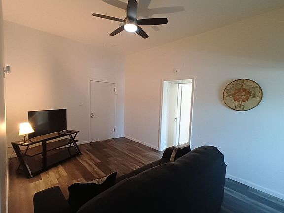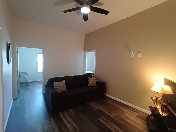 Fully furnished two bedroom apartment with newer vinyl flooring. Apartment has two full bathrooms, one with a tub/shower and the other with a stall shower. The kitchen comes equipped with a gas stove and microwave/range hood combo, and stainless steel refrigerator. Smaller bedroom has small closet area and larger bedroom has a freestanding closet storage with drawers. Living room comes with a sofa, tv and tv stand. In unit laundry area with stackable washer/dryer combo. Convenient downtown location, close to local shops and bus stops.
