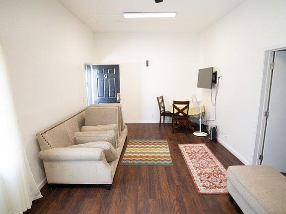Fully furnished two bedroom apartment with newer vinyl flooring. Apartment has one full bathroom, with a tub/shower. The kitchen comes equipped with a gas stove and microwave/range hood combo, and stainless steel refrigerator. Smaller bedroom has small closet area and larger bedroom has a freestanding closet storage with drawers. Living room comes with a sofa, tv and tv stand. In unit laundry area with stackable washer/dryer combo.