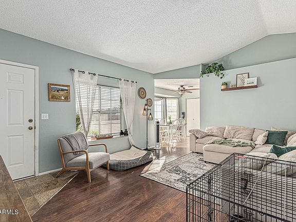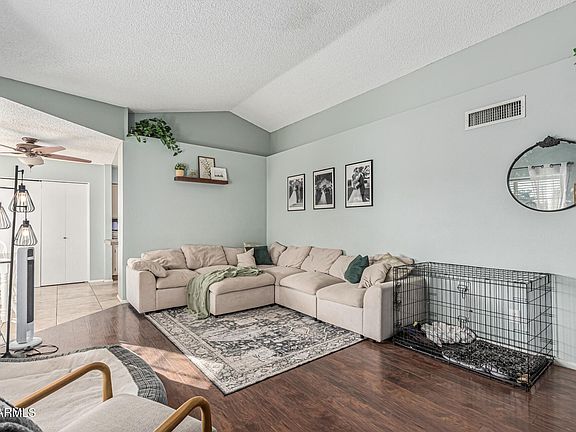 Home warranty for 1 year included! Enjoy easy living in this thoughtfully designed 3-bed, 2-bath home! Roof less than 10 years old, newer paint interior & exterior, new water heater and dishwasher. From the moment you arrive, a cozy front porch welcomes you. The inviting living room sets the stage for a delightful living experience, enhanced by wood-look flooring, vaulted ceilings, and neutral palette throughout. Adjacent to it is the dining area with a lovely bay window. The kitchen comes with plenty of cabinet space, tile counters & backsplash, built-in appliances, fluorescent lighting, and a handy pantry. Head to the primary bedroom to find plush carpet, a walk-in closet, and a private bathroom with two vanities. Unwind outdoors in the large backyard with pavers