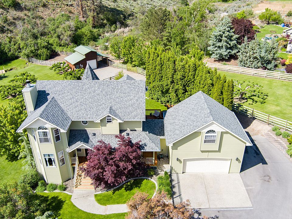 Behold this classic Victorian designed home sitting on a sun soaked 1.26 acres. Enjoy the close drive to town & the space of being outside city limits. As you enter a classic style foyer, immediately notice the custom features throughout such as the wood banisters leading you upstairs to the master suite. Within find space for any furniture arrangement plus a spacious closet, luxurious bathroom & soaking tub. The remaining upstairs includes two more bedrooms plus a common bath. Downstairs host in your living & dining room or relax in your family room. Kitchen gives ample space to work plus the breakfast nook. Extra room above the garage for more space for an office/bonus space. Backyard includes private trellis patio, pristine 80-year-old apple trees, barn/stable, & private creek.