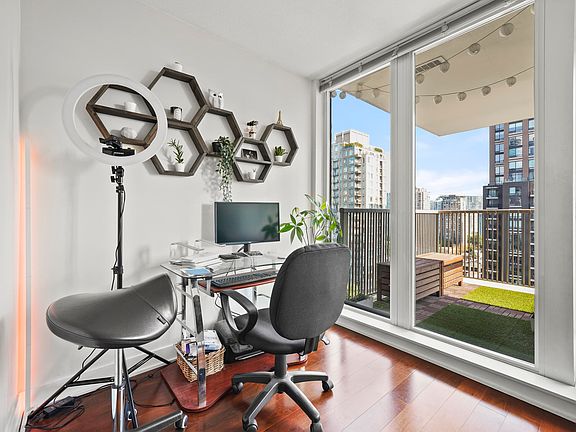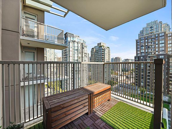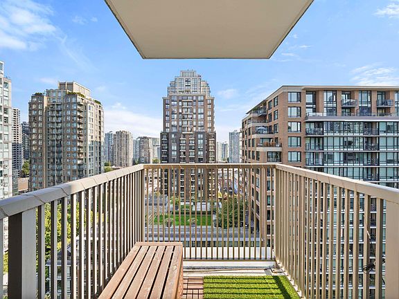 Welcome to the DONOVAN by Cressey, one of Yaletown’s most sought-after boutique buildings. This bright 1 bed + den home on the 17th floor offers open city views, AIR-CONDITIONING, engineered hardwood floors and floor-to-ceiling windows. The signature Cressey Kitchen™ features Miele appliances, granite counters and ample storage. A spacious den is ideal for a home office or in-suite storage. Enjoy excellent amenities including a gym, yoga room, sauna/steam and residents’ lounge. One parking and locker included. Steps to the SkyTrain, seawall, parks, shops and restaurants, this is a smart choice for first-time buyers or investors seeking quality and convenience.