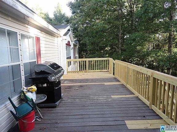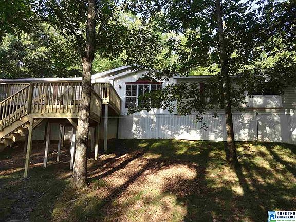 Unique home with 3 bedroom 2 bath nestled in trees on the back side of 5 acres M/L.This home has new countertops, new paint, and new carpet. The large deck has been completely refurbished! Near river and Plantation Golf Course. Located between Birmingham, Oneonta and Cullman. Large master bath and both baths have sky light. Covered front porch. 2 car carport, three out buildings, including a adorable chicken house. Very private.