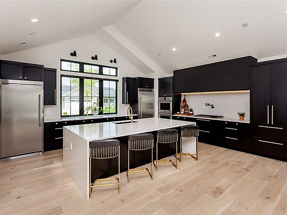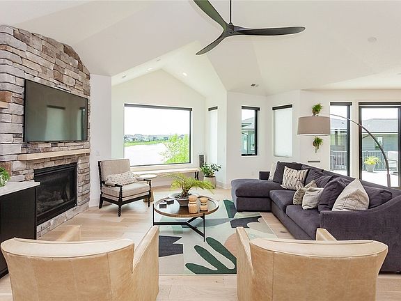 A spacious one-of-a-kind custom home with incredible views situated in the executive development, Kings Landing. This 4 bed, 5 bath walkout ranch offers ample room for both relaxation and indoor/outdoor entertainment with over 5,000 sq ft of finish. Welcomed by an open foyer that leads to the main living and dining space with vaulted ceilings, gas fireplace, large Pella windows and concrete deck overlooking the pond. A kitchen that is fit for a culinary enthusiasts with plenty of countertop space and cabinets for storage, large island, walk-in pantry and luxury SS appliance package. The master suite features vaulted ceilings, gas fireplace, wet room w/soaker tub, heated floors and custom closet cabinetry. Main floor also includes den w/fireplace and built in cabinets, laundry room, powder room and an accent wall with a hidden door that leads to a bonus room w/kitchenette above the garage. The lower level holds the family room, wet bar w/custom live edge top, powder room, 2nd laundry, 3 beds and 2 baths with finished concrete floors throughout. Sound proof, pre-wired theater room. Equipped with Control4 home automation w/touch screen and mobile device connectivity controlling lighting, audio, video and motorized roller shades in the main living areas. All information obtained from seller and public records.