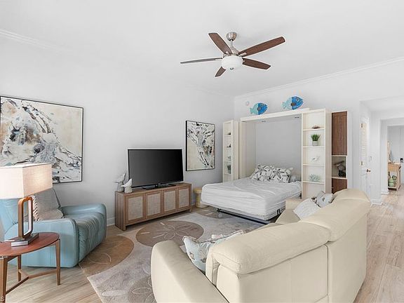 Experience resort-style luxury in the heart of Naples Bay Resort! This beautifully appointed two-bedroom, two-bath residence offers a blend of comfort, style and investment potential. Enjoy exclusive amenities including a full-service spa, state-of-the-art fitness center, tennis, lazy river, lap pool and poolside bar, all just minutes from Fifth Avenue’s dining, shopping and Gulf beaches. Inside, you’ll find custom flooring, a chef-inspired kitchen with island and a private screened lanai for relaxing evenings. A custom-built Murphy bed increases sleeping capacity to six, ideal for guests or rental flexibility. Offered fully furnished and turnkey, this property also includes potential rental revenue booked for two months of 2026. Whether for personal use or as a proven income producer, this home defines Naples resort living at its best.