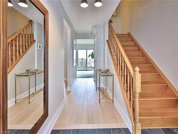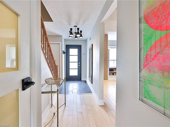 Welcome to this beautifully renovated and thoroughly updated 3-bedroom, 2-bath townhouse set in the heart of the vibrant community of Port Credit. Enjoy stylish finishes and modern appointments in the bright, open-concept main level which offers an inviting layout, highlighted by a stunning custom kitchen (2022) featuring bespoke cabinetry, under-cabinet lighting, quartz countertops, a zellige tile backsplash, island seating, stylish wood accents, and newer appliances including a 2023 fridge and microwave. Fresh paint, LED pot lights, new maple hardwood flooring, porcelain tile in the entry, and all-new doors and trim create a seamless modern feel. The spacious living area opens to a private rear garden, perfect for relaxing or entertaining, and is complemented by an adjoining dining area. A new exterior entry door adds a fresh, contemporary touch to the home’s façade. Upstairs, the home offers three generous bedrooms with hardwood flooring throughout and ample closet space. The fully renovated (2019) 4-piece main bath exudes elegance with marble tile flooring, pot lights, porcelain wall tile, a quartz-topped vanity, and a Toto toilet. The fully renovated (2025) lower level provides exceptional versatility with a spacious rec room ideal as an additional living area or potential bedroom. This level showcases vinyl plank stairs and flooring, new trim and baseboards, LED pot lights, and fresh paint. Completing the space is a beautifully renovated (2019) 3-piece bath offering an oversized glass framed shower, basketweave tile flooring, pot lights, custom vanity, and a Toto toilet. The utility room features a newer furnace & A/C (2021), laundry area, ample storage and convenient separate entrance from the garage. Just minutes from Port Credit village, the GO Train, major highways, top-rated schools, parks, Lake Ontario, and the waterfront trail, this home perfectly blends modern luxury with everyday convenience. Don’t miss this exceptional opportunity.