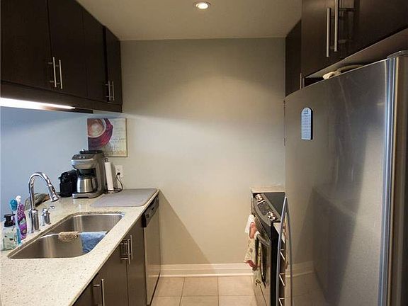 Bright and spacious, this beautifully appointed suite in the prestigious Stonebrook Condominiums at 1055 Southdown Rd. offers 730 sq. ft. of stylish living with the privacy of serene ravine and nature views. Featuring one bedroom plus a separate den with French doors, the layout is both functional and versatile. Floor-to-ceiling windows flood the space with natural light, while nine-foot ceilings and hardwood throughout, including the bedroom, add a touch of luxury. Enjoy a large open balcony, a 4-piece bath with separate shower, and the convenience of both parking and a locker. Ideally located within walking distance to Clarkson GO, Shops like Metro HomeSense and Canadian Tire, the Ontario Racquet Club, and Clarkson Village, with easy access to the QEW and 403.