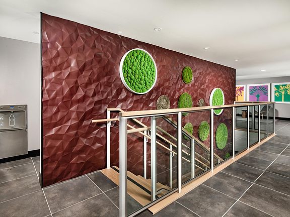 - Exterior features: Community-Wide Wi-Fi, Double Bathroom Vanities (select homes), In-Residence Wi-Fi, Keyless Entry, LED Bathroom Mirror Lighting, Lawn, Package Receiving, Pet Park, Pet Washing Station, Pfister Plumbing Fixtures and Hardware, Private Balconies (select homes), Private and Coworking Spaces, Quartz Countertops and Tile Backsplash, Roller Shade Window Treatments, Smart Building Entry, Spin and Yoga Studios, TV Lounge, Whirlpool Stainless Steel Appliances, Wood-Style Flooring in Living Areas