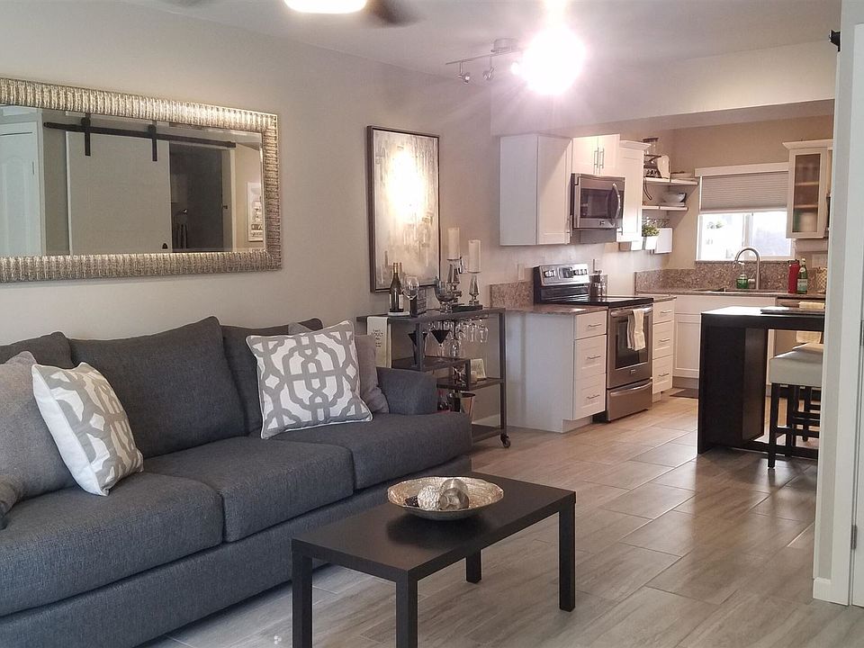 2 bedroom/1.5 bath plus additional sink vanity w/ 1 covered parking...and furnished. Updated throughout-White shaker kitchen cabinets, SS appliances, laminated flooring throughout. Bedrooms, full bath plus additional vanity upstairs, Living Room, Kitchen & 1/2 bath and w/d laundry downstairs. Back patio off kitchen. Located near ASU, 101 and easy access throughout Tempe.