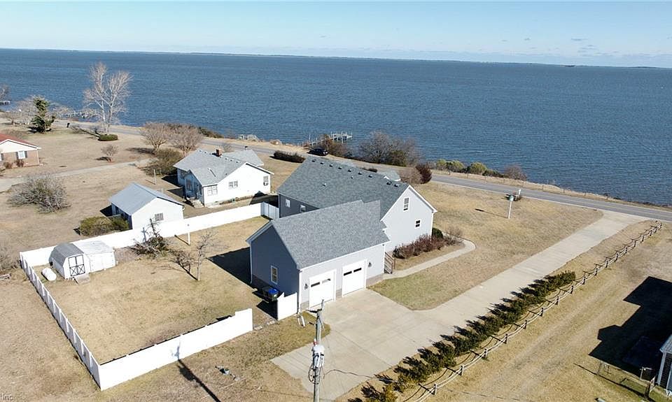 This stunning custom-built 2017 Cape Cod offers breathtaking views of the Currituck Sound and includes ownership of a soundfront parcel across the street—perfect for adding your own pier! Enjoy an open floor plan with LVP flooring, a spacious great room, and a chef’s kitchen featuring a gas stove, stainless steel appliances, island, walk-in pantry, and a workstation overlooking the water. The first-floor primary suite showcases serene views and a luxurious ensuite bath. A flexible room and guest bath on the main level offer added versatility. Upstairs, two bedrooms and a full bath provide comfort and privacy. Additional highlights include a large laundry room, 776 SF garage, and back deck for entertaining. No HOA or flood insurance required! Ideally located in Coinjock, NC, just minutes from a public boat ramp and convenient to both the Outer Banks and Hampton Roads. A rare opportunity for waterfront living at its best!