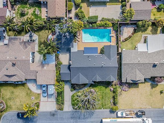 Beautiful pool home on a cul de sac street in a great area of Downey. This home has 3 large bedrooms, 2 bathrooms, hardwood floors throughout, open floor plan with a formal living room and a family room with a fireplace. Kitchen has quartz countertops with a farmhouse sink, stainless steel double oven, dishwasher and view of the pool. Central air and heating, copper plumbing, long driveway with a carport and a detached two car garage. The house has 1766 sqft with a lot size of 8052 sqft.