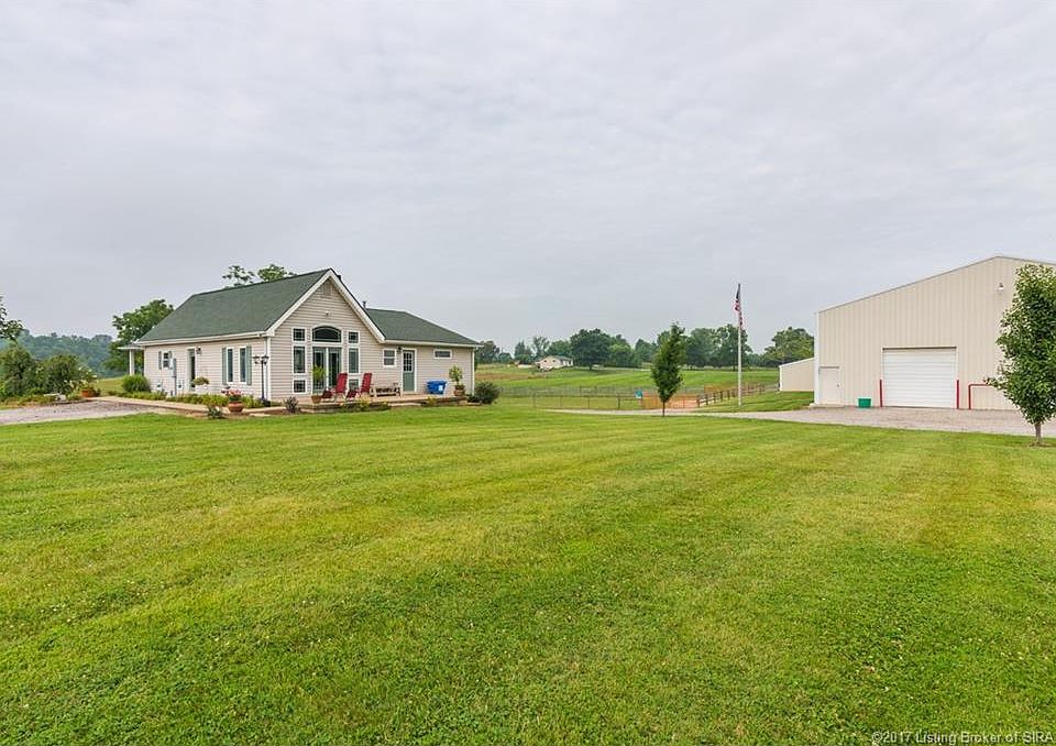 Looking for the perfect farm home with a great view? You will love this 2 bed, 2 bath home sitting on 13 acres overlooking the skyline! HUGE 50 x 80 pole barn has its own additional living quarters. Perfect man cave! Also features 3 horse stalls with rubber matting and an automatic horse waterier! Enjoy fishing in your own pond that is FULLY stocked with fish. Home features open living/kitchen area with beautiful hardwood floors, an office that could be a potential 3rd bedroom and an unfinished basement to make it your own!