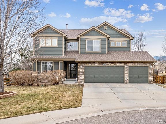 Wonderful two story home with a full basement located on a quiet cul-de-sac with views of both the mountains and downtown.  Open floor plan, full of windows letting in the one of a kind views and an abundance of natural light throughout the home.  The main floor is ideal for entertaining with newer carpet and recently refinished hardwood floors.  Enter the main level into the floor to ceiling foyer that is adjacent to the formal living room and dining room.  Large kitchen with 42 inch cabinets, work station, center island, newer Samsung appliances including a gas cook top and double ovens.  Eat in nook just off the sliding patio door.  Large family room with custom niches, gas fireplace and floor to ceiling windows with great views of the mountains and hogback.  Main floor bedroom/study, 3/4 bathroom with custom tile shower floor, and countertops.  Large laundry room with newer washer/dryer, built in cabinets and utility sink. Upstairs is the large primary bedroom with vaulted ceiling, 5 piece primary bathroom with custom tile floors, shower and soaking tub surrounds and dual vanities.  Huge walk in closet with center dresser/folding table.  Walk across the open railing hallway over looking the family room and views to a loft area, 3/4 updated bathroom with dual vanities and two additional bedrooms both with views of the mountains and downtown.  Full basement with large egress windows, roughed in plumbing just ready to be finished.  Updated plumbing, electrical and hardware fixtures throughout.  Window coverings.  Updated systems including central A/C.  3 car garage.  Oversized level private lot.  Professionally landscaped with mature trees and bushes with both front and back yard sprinkler systems.  Close to everything including walking distance to the local parks, playgrounds, schools, shopping center, (new Starbucks) restaurants , bars, Waterton Canyon, Chatfield Park and Reservoir, short drive to Arrowhead Golf Course and Roxborough State Park, plus much more!!!