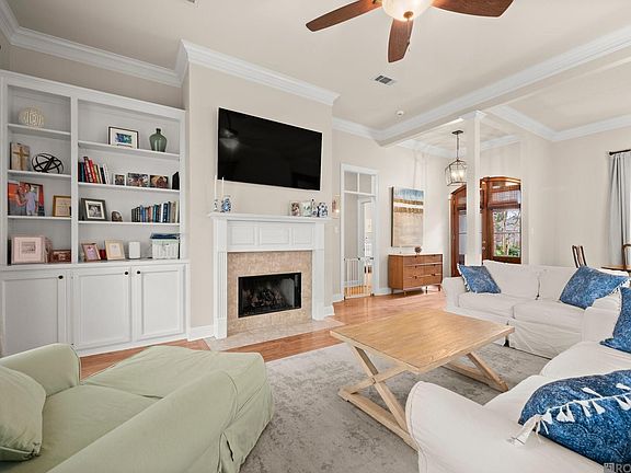 If you want space and style, this home in Springlake has it! Very pretty, freshly painted, UPDATED home has 11’ ceilings, hardwood floors, big natural stained beams, arched wooden front door, built in bookcases, fireplace with gas logs (2023), walls of windows to let the light shine in from the front and back yards in the living/dining areas. Also a private courtyard with 8’ BRICK wall perfect for morning coffee! Kitchen has stainless appliances, island, slab granite, and a sun filled view of the private patio . Nestled in a quiet cul-de-sac featuring Natchez White Crepe Myrtles, wooden privacy fence. The master bedroom and ensuite bath have varied height ceilings, water closet, shower, tub and generous walk in closet. The split floorplan features two other bedrooms and a hall bath. NEW HVAC system (air), NEW brick patio in backyard, attached storage room has window unit and it being used as home office. Backyard has no neighbors, it backs up to the fenced, parklike common area, great for entertaining. Flood zone X- no flood insurance was required. You will also have use of the common areas. Its amenities include an Olympic-sized pool and kiddie pool, tennis courts, a park with swings and a multi-purpose event field. You'll be close to LSU and downtown, shopping and I-10. No flood insurance required