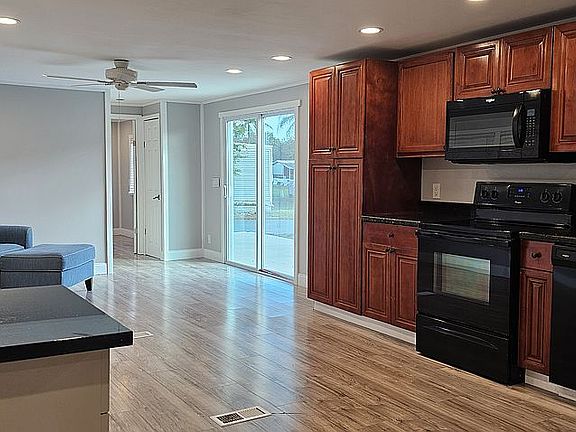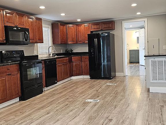 Dark Wood Cabinets and Black Granite Countertops make this kitchen warm and sophisticated. All kitchen appliances are included.