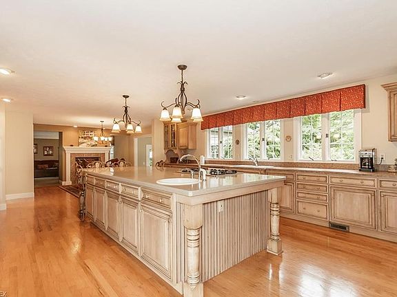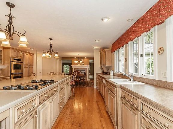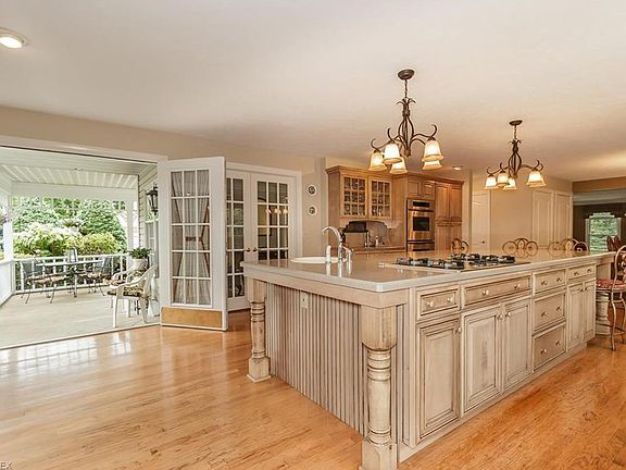 Classic colonial with wrap around porch, multi level paver patios and walkway. The gourmet kitchen is equipped with a Sub Zero refrigerator, Bosch dishwasher, Thermador double ovens and island cooktop. Enjoy the custom Starmark taupe glazed cabinets and 12 x 5 island with large prep sink. Loads of storage with the built in bar area, two hutches and seating at the island, all open to the sunroom and dining room with fireplace. Sunroom is bright and airy with loads of windows and sliding doors to private patio with fenced in yard. Cozy family room with brick double sided fireplace is off the garage hall entrance where you will also find a half bath and laundry room. Looking out to the covered front porch is Den, currently used as a living room but would fit well as an office due to French doors at both kitchen and foyer entrance. The two story foyer with catwalk leads to 3 bedrooms. The large owner's suite has lots of closet space, updated bath with large vanity, tub and glass shower. Updated full bath and two other bedrooms upstairs (one being used as office). Closet after closet in the lower level recreation room, perfect for craft storage, games or collections. Custom window treatments, wood blinds, new paint and carpet throughout, just a pleasure to tour. Newer roof 2009, Trane furnace and show pride of ownership. Call for a private showing before it's gone!