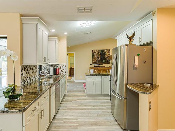 H.16506 - NORTH NAPLES BEAUTY, This Bright pool home has been re-modeled from flooring to the Roof, Current Finishes, stainless appliances, a back yard that makes you want to stay home, private setting with mature Landscaping for privacy, Just painted, immaculate and ready for you. 3 Bedrooms and a large family room off the kitchen, Popular school district, Low Fees. NO ROAD NOISE!!!!