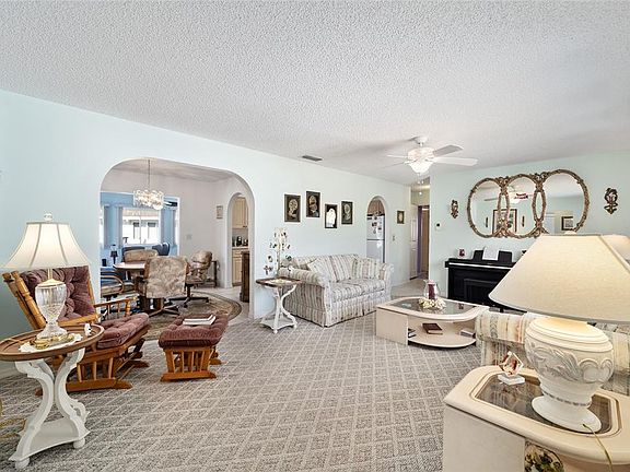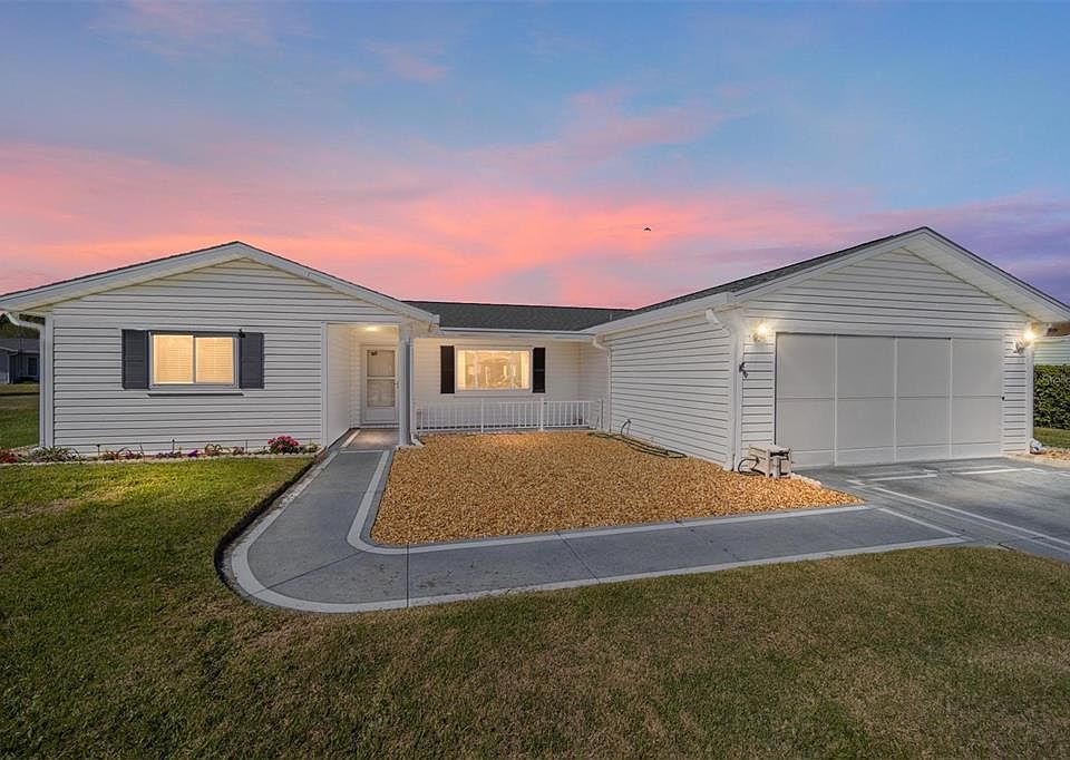 Charming and cozy home located in Spruce Creek South, a 55+ gated golf course community just north of The Villages! This inviting split-bedroom floor plan features a spacious den, perfect for an office or additional living space, plus a large enclosed Florida room to enjoy year-round. A bonus golf cart garage provides ample storage and could easily be converted into a workshop for your hobbies. Light and bright throughout, this home boasts a generous master suite with a large walk-in closet for added convenience. Ideal for those seeking comfort and a relaxed lifestyle in a vibrant, active community! Reverse Osmosis water treatment system, 2023 ROOF, 2022 HOT WATER HEATER, 2020 ELECTRIC PANEL, 2016 HVAC, 2025 Side door for garage has been replaced, as well as the control panel for irrigation.