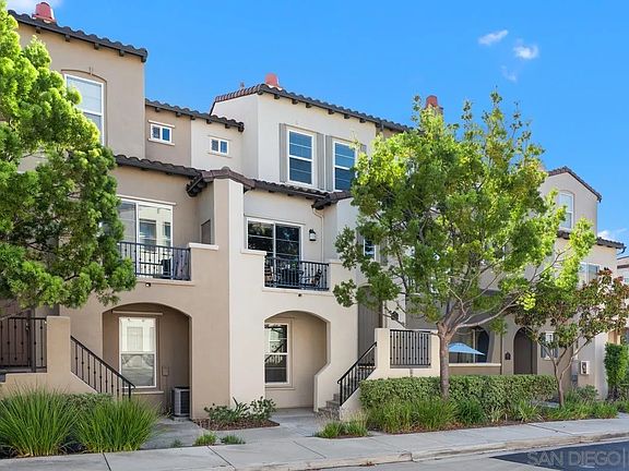 Your NEWLY REMODELED San Moritz Townhome Awaits! The open concept main floor features a spacious modern kitchen with stainless steel appliances & a large island, a large bright living/dining room with elegant fireplace, beautiful stone tile flooring and a private outdoor balcony, perfect for enjoying the evening breeze or firing up the grill. A powder room for guests, as well as a laundry room round out the main floor. Upstairs, the spacious primary suite offers mountain views, a spacious ensuite bath with dual vanity, a walk in closet and a separate office/den space, while the ground floor features private guest suite with ensuite bath, storage, and a two car garage. The community features pool, spa and bbq areas, and is located within close proximity to parks, shopping, restaurants, freeways, and the award winning Poway School District.