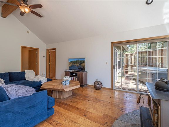 Located on nearly 1/3 acre in one of the most desirable local neighborhoods. This home is perfectly designed to take advantage of all Truckee has to offer. You’ll appreciate the high ceilings with floor to ceiling windows bringing in plenty of natural light to the open floor plan. Walk out to the lovely wrap deck off the back to a fully fenced back yard. The backyard is large and perfect for kids or dogs and includes a greenhouse. The spacious master bedroom includes high ceilings,a nice walk-in closet, and a wall of windows facing the back deck and hot tub with a privacy fence. Plenty of parking with a 2 car garage, plus a 3rd separate garage bay allowing for space for all your Tahoe Toys or a workshop, The 3rd bay even a full bath off the garage, so you can clean up before coming back to the house. The side of the house has plenty of space for a trailer for a boat, jet skis or snowmobiles. Located just a few blocks from restaurants at The Rock and various bike paths in Martis Valley, Northstar or along the Truckee River with easy access to the local regional park with a farmer's market. This community boasts a community pool, tennis courts and playground. Just imagine, your days filled with all that the Truckee lifestyle has to offer or enjoy relaxing in your private hot tub under the sierra stars!