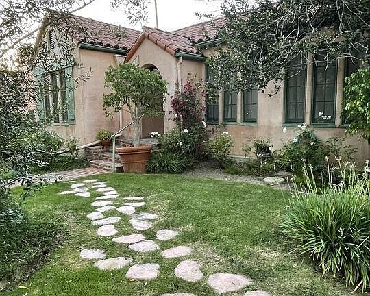 Charming Spanish style home with excellent curb appeal, lovely architectural details and beautifully tended front and rear gardens. Enter through a cute front gate and walk up a brick walkway to the original, Spanish style front door.
