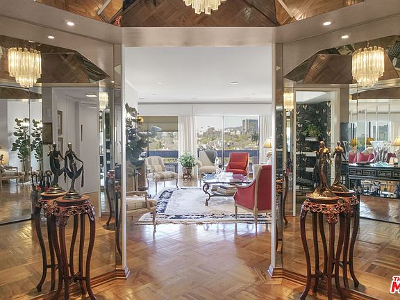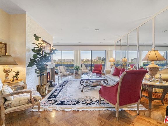 Enter this warm and welcoming corner unit streaming with natural light. Gracious Living Room with fireplace and Formal Dining room open to a generous balcony, Den with wet bar complete the entertaining areas all with oak parquet wood flooring. Sweeping northerly views of Westwood Hills, Bel Air and the Getty. Newly remolded Kitchen features Convection/Microwave oven, Viking induction cook top, dishwasher and brand-new Fisher&Paykel built in Refrigerator/Freezer. Separate laundry room with service entrance. In addition, there is a lovely Breakfast room. Spacious Primary Bedroom with newly remolded Bath, includes double vanity with backlit Cristalo Marble. Marble countertops and under cabinet automatic lighting. Separate Shower and soaking tub. Second Bedroom suite, includes built in cabinets and desk. Motorized shades are in Dining Room, Living Room, Den, and Primary Bedroom. Separate storage locker, Side by side parking. Furniture can be sold separately. HOA Dues include: Water 24 Hour Concierge, Valet, Pool, Sauna, Gym, Recreation Room, and Basic cable. Trust Sale no court conformation. 24 Hour notice to show Text Agent.