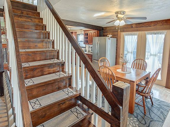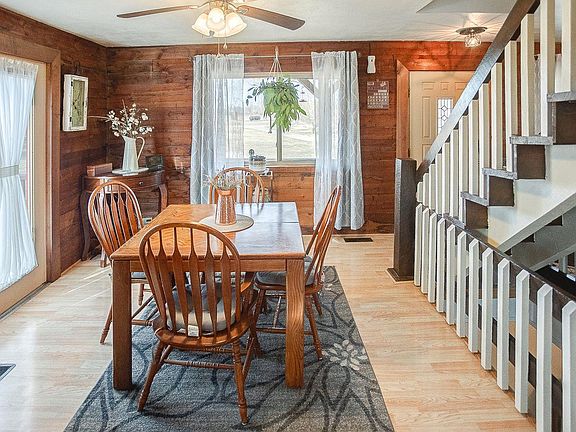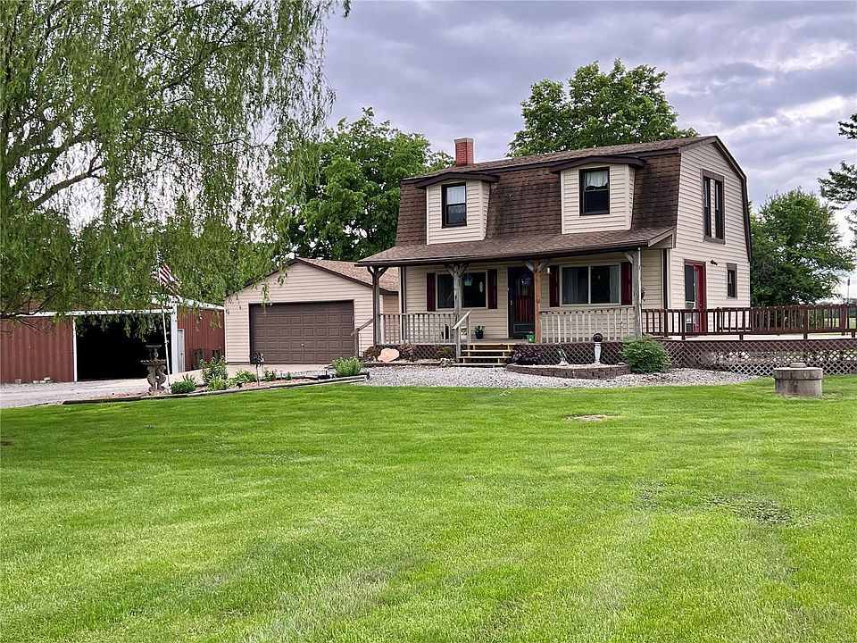 Secluded, rustic, charming and ready for you! This gorgeous home sits on 9 acres with a stocked pond, just right out of town. Once you open the front door you will love the open concept that includes a tastefully remodeled kitchen with granite counter tops. Off the dining room, you will find the PERFECT spot to watch the stunning sunset after a long day. The 3 bedrooms are upstairs and share a full bath. 1/2 bath on main level. The finished basement has a LARGE family room, room for storage in the utility room and a bonus non-conforming bedroom. New flooring in basement! The oversized and deep 2 car garage is insulated and has new shingles (2021). The pole barn has electric and is 30x40. The property also has an apple tree. Sellers even offering a home warranty from APHW! Do not miss seeing this awesome home in the Triad School District! Buyers/agents to verify all data independently.